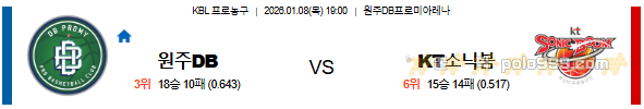 2026-01-08 19:00 KBL 원주 DB vs 수원 KT 페이지 정보 작성자 꿀픽 댓글 0건 조회 119회 작성일 26-01-08 13:14 목록 답변 글쓰기 본문 이전글2026-01-08 09:00 NBA 필라델피아 76ERS vs 워싱턴 위자드 26.01.08 다음글2026-01-08 09:00 NBA 샬럿 호네츠 vs 토론토 랩터스 26.01.08 댓글 0 댓글목록 등록된 댓글이 없습니다.