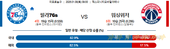 2026-01-08 09:00 NBA 필라델피아 76ERS vs 워싱턴 위자드 페이지 정보 작성자 꿀픽 작성일 26-01-08 13:48 조회 135 댓글 0 본문 이전글 2026-01-08 11:30 NBA 샌안토니오 스퍼스 vs LA 레이커스 다음글 2026-01-08 19:00 KBL 원주 DB vs 수원 KT 댓글목록 0 등록된 댓글이 없습니다.