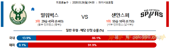 2026-03-29 04:00 NBA 밀워키 벅스 vs 샌안토니오 스퍼스 페이지 정보 작성자 꿀픽 댓글 0건 조회 216회 작성일 26-03-28 23:41 목록 답변 글쓰기 본문 다음글2026-03-29 06:30 NBA 미네소타 울브스 vs 디트로이트 피스톤스 26.03.28 댓글 0 댓글목록 등록된 댓글이 없습니다.