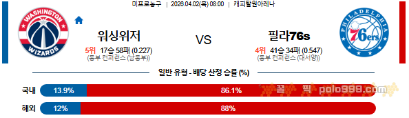 2026-04-02 08:00 NBA 워싱턴 위자드 vs 필라델피아 76ERS 페이지 정보 작성자 꿀픽 댓글 0건 조회 224회 작성일 26-04-01 17:35 목록 답변 글쓰기 본문 이전글2026-04-02 10:00 NBA 유타 재즈 vs 덴버 너겟츠 26.04.01 다음글2026-04-01 08:00 NBA 올랜도 매직 vs 피닉스 선즈 26.04.01 댓글 0 댓글목록 등록된 댓글이 없습니다.