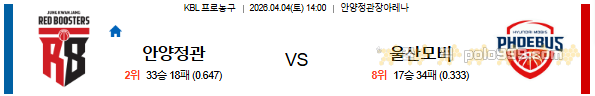2026-04-04 14:00 KBL 안양 정관장 vs 울산 현대모비스 페이지 정보 작성자 꿀픽 댓글 0건 조회 277회 작성일 26-04-03 22:08 목록 답변 글쓰기 본문 이전글2026-04-04 09:00 NBA 휴스턴 로켓츠 vs 유타 재즈 26.04.03 다음글2026-04-04 14:00 KBL 원주 DB vs 서울 삼성 26.04.03 댓글 0 댓글목록 등록된 댓글이 없습니다.