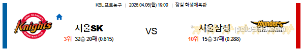 2026-04-06 19:00 KBL 서울 SK vs 서울 삼성 페이지 정보 작성자 꿀픽 댓글 0건 조회 286회 작성일 26-04-05 20:52 목록 답변 글쓰기 본문 이전글2026-04-06 08:30 NBA 댈러스 매버릭스 vs LA 레이커스 26.04.05 다음글2026-04-06 08:00 NBA 오클라호마시티 썬더 vs 유타 재즈 26.04.05 댓글 0 댓글목록 등록된 댓글이 없습니다.