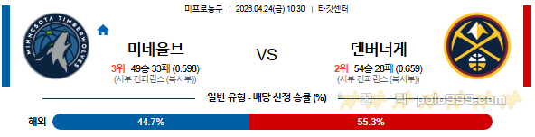 2026-04-24 10:30 NBA 미네소타 울브스 vs 덴버 너겟츠 페이지 정보 작성자 꿀픽 댓글 0건 조회 136회 작성일 26-04-23 21:07 목록 답변 글쓰기 본문 이전글2026-04-24 19:00 KBL 안양 정관장 vs 부산 KCC 26.04.23 다음글2026-04-24 09:00 NBA 토론토 랩터스 vs 클리블랜드 캐벌리어스 26.04.23 댓글 0 댓글목록 등록된 댓글이 없습니다.