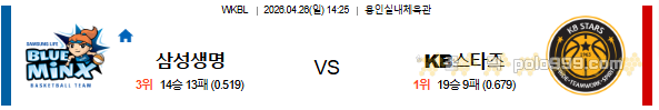 2026-04-26 14:25 WKBL 삼성생명 vs KB스타즈 페이지 정보 작성자 꿀픽 댓글 0건 조회 134회 작성일 26-04-25 18:46 목록 답변 글쓰기 본문 이전글2026-04-26 04:30 NBA 피닉스 선즈 vs 오클라호마시티 썬더 26.04.25 다음글2026-04-26 02:00 NBA 올랜도 매직 vs 디트로이트 피스톤스 26.04.25 댓글 0 댓글목록 등록된 댓글이 없습니다.