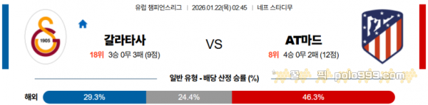 2026-01-22 02:45 UEFA 챔피언스리그 갈라타사라이 AT 마드리드