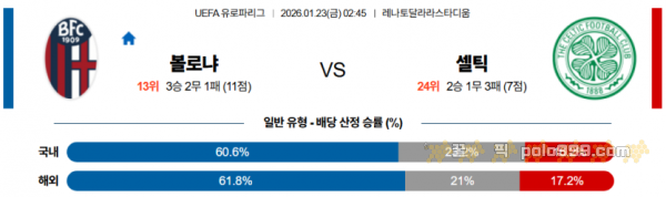 2026-01-23 02:45 UEFA 유로파리그 볼로냐 FC 셀틱 FC