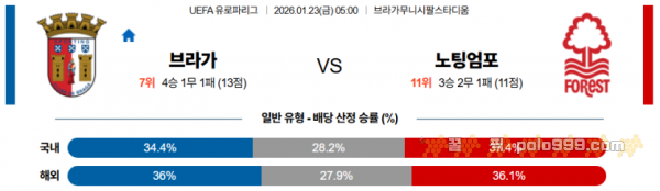 2026-01-23 05:00 UEFA 유로파리그 SC 브라가 노팅엄 포레스트
