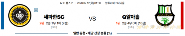 2026-02-12 01:00 AFC 챔피언스리그 2 세파한 FC 알 아흘리 도하