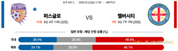 2026-03-22 17:00 호주 A리그 퍼스 글로리 FC 멜버른 시티 FC