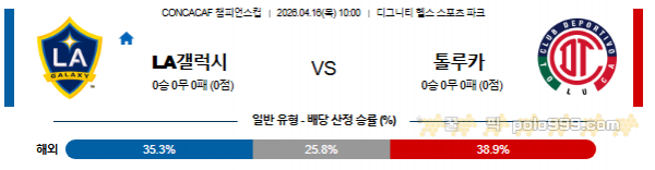 그럼에도 불구하고 톨루카의 역습 전개는 여전히 날카롭고, LA갤럭시가 무리하게 라인을 올릴 경우 파울리뉴와 앙굴로를 활용한 직선적인 전환은 분명 위협이 될 수 있다.