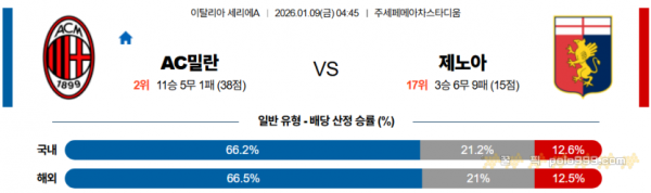2026-01-09 04:45 세리에 A AC 밀란 제노아 CFC > 축구픽게시판