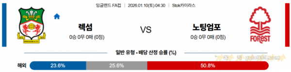 2026-01-10 04:30 잉글랜드 FA컵 렉섬 노팅엄 포레스트