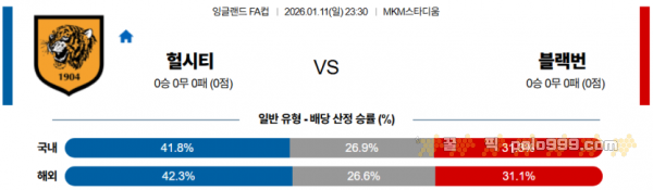 2026-01-11 23:30 잉글랜드 FA컵 헐 시티 AFC 블랙번 로버스