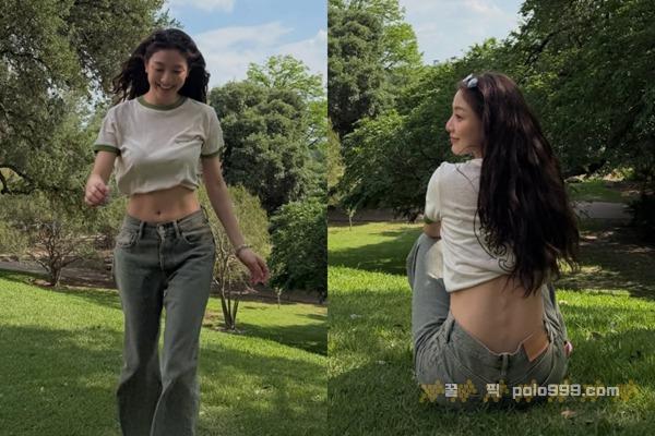 특히 잔디밭에 앉아 뒤태를 자랑한 지효는 척추라인까지 고스란히 드러낸 모습으로 눈길을 끌었다.