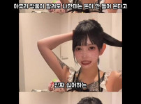모델 안나경 앞스트랩 나시 숙인 가슴골