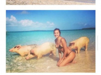 돼지섬(Pig Island). 바하마의 대표 관광지 중 하나인 돼지섬은 바하마 수도 낫소에서 남동쪽에 있는 엑수마 군..