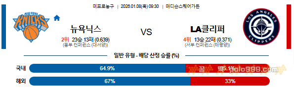 2026-01-08 09:30 NBA 뉴욕 닉스 vs LA 클리퍼스 페이지 정보 작성자 꿀픽 댓글 0건 조회 290회 작성일 26-01-08 15:28 목록 답변 글쓰기 본문 이전글2026-01-08 09:30 NBA 브루클린 네츠 vs 올랜도 매직 26.01.08 다음글2026-01-08 12:00 NBA 골든스테이트 워리어스 vs 밀워키 벅스 26.01.08 댓글 0 댓글목록 등록된 댓글이 없습니다.