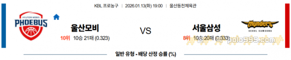 2026-01-13 19:00 KBL 울산 현대모비스 서울 삼성