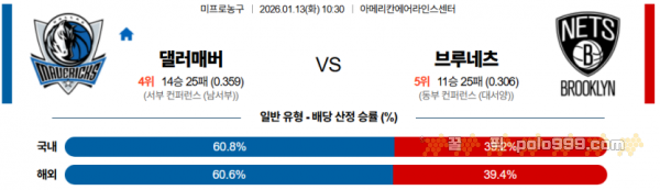 2026-01-13 10:30 NBA 댈러스 매버릭스 브루클린 네츠