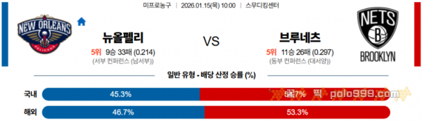 2026-01-15 10:00 NBA 뉴올리언스 펠린컨즈 브루클린 네츠