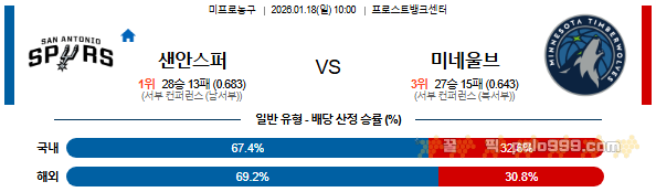 2026-01-18 10:00 NBA 샌안토니오 스퍼스 vs 미네소타 울브스 페이지 정보 작성자 꿀픽 댓글 0건 조회 231회 작성일 26-01-17 19:53 목록 답변 글쓰기 본문 이전글2026-01-18 09:30 NBA 뉴욕 닉스 vs 피닉스 선즈 26.01.17 다음글2026-01-17 12:30 NBA 새크라멘토 킹스 vs 워싱턴 위자드 26.01.16 댓글 0 댓글목록 등록된 댓글이 없습니다.