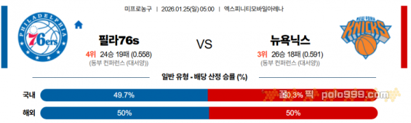 2026-01-25 05:00 NBA 필라델피아 76ERS 뉴욕 닉스