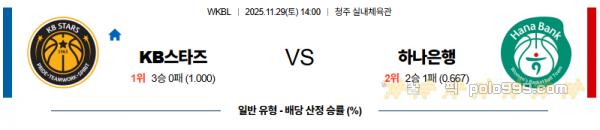 11월 29일 WKBL KB스타즈 vs 하나은행