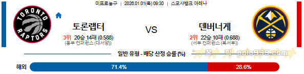 2026-01-01 09:30 NBA 토론토 랩터스 vs 덴버 너겟츠 페이지 정보 작성자 꿀픽 댓글 0건 조회 124회 작성일 26-01-02 23:09 목록 답변 글쓰기 본문 이전글2026-01-02 09:00 NBA 디트로이트 피스톤스 vs 마이애미 히트 26.01.02 다음글2026-01-01 05:00 NBA 애틀랜타 호크스 vs 미네소타 울브스 26.01.02 댓글 0 댓글목록 등록된 댓글이 없습니다.