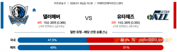 2026-01-16 10:30 NBA 댈러스 매버릭스 유타 재즈