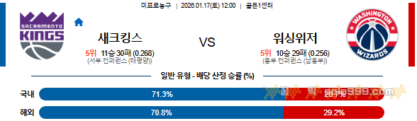 2026-01-17 12:30 NBA 새크라멘토 킹스 vs 워싱턴 위자드 페이지 정보 작성자 꿀픽 댓글 0건 조회 164회 작성일 26-01-16 19:20 목록 답변 글쓰기 본문 이전글2026-01-18 10:00 NBA 샌안토니오 스퍼스 vs 미네소타 울브스 26.01.17 다음글2026-01-17 09:30 NBA 토론토 랩터스 vs LA 클리퍼스 26.01.16 댓글 0 댓글목록 등록된 댓글이 없습니다.