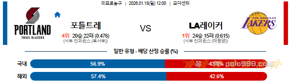 2026-01-18 12:00 NBA 포틀랜드 트레일블레이저 vs LA 레이커스 페이지 정보 작성자 꿀픽 댓글 0건 조회 118회 작성일 26-01-17 22:43 목록 답변 글쓰기 본문 이전글2026-01-18 09:30 NBA 애틀랜타 호크스 vs 보스턴 셀틱스 26.01.18 다음글2026-01-18 10:30 NBA 골든스테이트 워리어스 vs 샬럿 호네츠 26.01.17 댓글 0 댓글목록 등록된 댓글이 없습니다.