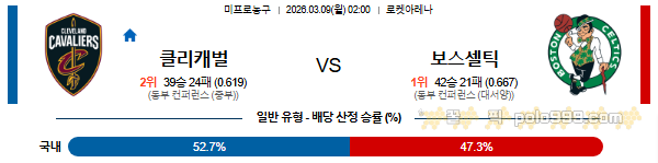2026-03-09 02:00 NBA 클리블랜드 캐벌리어스 vs 보스턴 셀틱스 페이지 정보 작성자 꿀픽 작성일 26-03-09 18:36 조회 214 댓글 0 본문 이전글 2026-03-10 11:00 NBA LA 클리퍼스 vs 뉴욕 닉스 다음글 2026-03-05 11:30 NBA 밀워키 벅스 vs 애틀랜타 호크스 댓글목록 0 등록된 댓글이 없습니다.