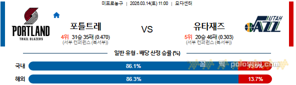 2026-03-14 11:00 NBA 포틀랜드 트레일블레이저 vs 유타 재즈 페이지 정보 작성자 꿀픽 댓글 0건 조회 231회 작성일 26-03-14 15:29 목록 답변 글쓰기 본문 이전글2026-03-14 11:00 NBA 골든스테이트 워리어스 vs 미네소타 울브스 26.03.14 다음글2026-03-14 14:00 KBL 부산 KCC vs 안양 정관장 26.03.14 댓글 0 댓글목록 등록된 댓글이 없습니다.