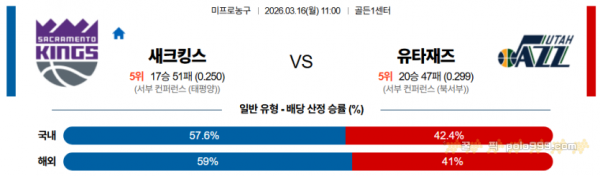 2026-03-16 11:00 NBA 새크라멘토 킹스 유타 재즈
