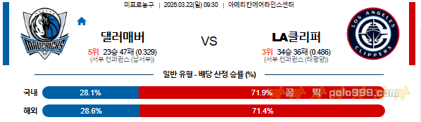 2026-03-22 09:30 NBA 댈러스 매버릭스 vs LA 클리퍼스 페이지 정보 작성자 꿀픽 댓글 0건 조회 123회 작성일 26-03-21 22:22 목록 답변 글쓰기 본문 이전글2026-03-22 08:00 NBA 샬럿 호네츠 vs 멤피스 그리즐리즈 26.03.21 다음글2026-03-22 09:00 NBA 애틀랜타 호크스 vs 골든스테이트 워리어스 26.03.21 댓글 0 댓글목록 등록된 댓글이 없습니다.