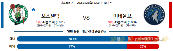 2026-03-23 09:00 NBA 보스턴 셀틱스 vs 미네소타 울브스 페이지 정보 작성자 꿀픽 작성일 26-03-23 12:15 조회 107 댓글 0 본문 이전글 2026-03-24 NBA 10:30 댈러스 매버릭스 vs 골든스테이트 워리어스 다음글 2026-03-23 10:00 NBA 피닉스 선즈 vs 토론토 랩터스 댓글목록 0 등록된 댓글이 없습니다.