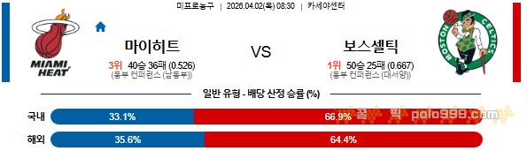 2026-04-02 08:30 NBA 마이애미 히트 vs 보스턴 셀틱스 페이지 정보 작성자 꿀픽 댓글 0건 조회 208회 작성일 26-04-01 20:59 목록 답변 글쓰기 본문 이전글2026-04-02 08:00 NBA 올랜도 매직 vs 애틀랜타 호크스 26.04.01 다음글2026-04-02 09:00 NBA 멤피스 그리즐리즈 vs 뉴욕 닉스 26.04.01 댓글 0 댓글목록 등록된 댓글이 없습니다.