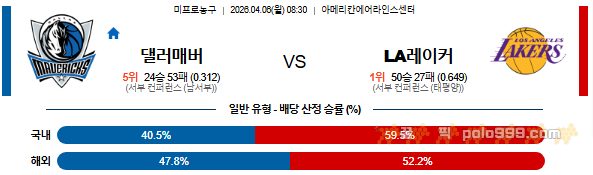 2026-04-06 08:30 NBA 댈러스 매버릭스 vs LA 레이커스 페이지 정보 작성자 꿀픽 댓글 0건 조회 321회 작성일 26-04-05 22:20 목록 답변 글쓰기 본문 이전글2026-04-06 08:00 NBA 미네소타 울브스 vs 샬럿 호네츠 26.04.05 다음글2026-04-06 19:00 KBL 서울 SK vs 서울 삼성 26.04.05 댓글 0 댓글목록 등록된 댓글이 없습니다.