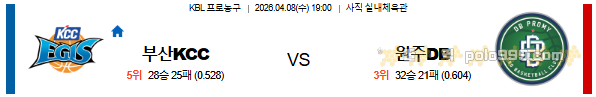 2026-04-08 19:00 KBL 부산 KCC vs 원주 DB 페이지 정보 작성자 꿀픽 댓글 0건 조회 234회 작성일 26-04-08 16:51 목록 답변 글쓰기 본문 이전글2026-04-08 12:00 NBA 피닉스 선즈 vs 휴스턴 로켓츠 26.04.08 다음글2026-04-08 19:00 KBL 서울 삼성 vs 대구 한국가스공사 26.04.08 댓글 0 댓글목록 등록된 댓글이 없습니다.