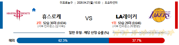 2026-04-27 10:30 NBA 휴스턴 로켓츠 vs LA 레이커스 페이지 정보 작성자 꿀픽 댓글 0건 조회 176회 작성일 26-04-26 20:48 목록 답변 글쓰기 본문 이전글2026-04-27 02:00 NBA 토론토 랩터스 vs 클리블랜드 캐벌리어스 26.04.26 다음글2026-04-26 14:00 KBL 안양 정관장 vs 부산 KCC 26.04.26 댓글 0 댓글목록 등록된 댓글이 없습니다.