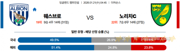 2026-01-21 04:45 잉글랜드 챔피언쉽 웨스트 브로미치 앨비언 노리치 시티 FC