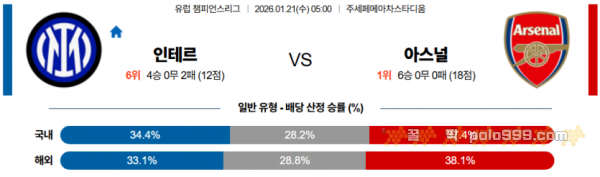 2026-01-21 05:00 UEFA 챔피언스리그 SC 인테르 아스널