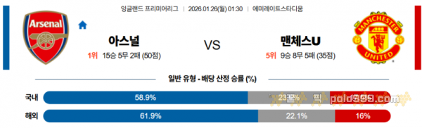 2026-01-26 01:30 프리미어리그 아스널 맨체스터 유나이티드