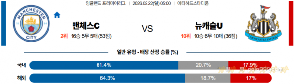 2026-02-22 05:00 프리미어리그 맨체스터 시티 뉴캐슬 유나이티드 > 축구픽게시판