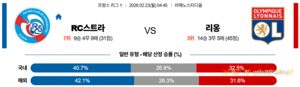 2602-02-23 04:45 리그앙 RC 스트라스부르 올랭피크 리옹