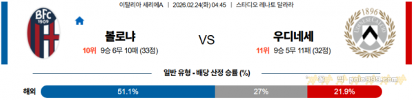 2026-02-24 04:45 세리에 A 볼로냐 FC 우디네세 칼초