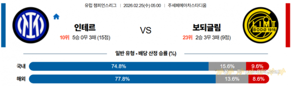2026-02-25 05:00 UEFA 챔피언스리그 SC 인테르 FK 보되/글림트 > 축구픽게시판