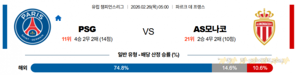 2026-02-26 05:00 UEFA 챔피언스리그 파리 생제르맹 AS 모나코