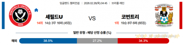 2026-02-26 04:45 잉글랜드 챔피언쉽 셰필드 유나이티드 코번트리 시티