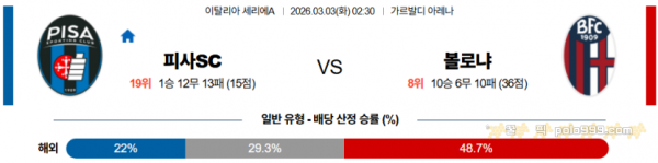 2026-03-03 02:30 세리에 A 피사SC 볼로냐 FC